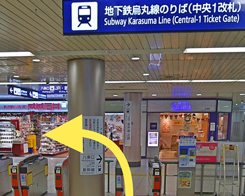 京都市営地下鉄(烏丸線中央1改札)からのアクセス
